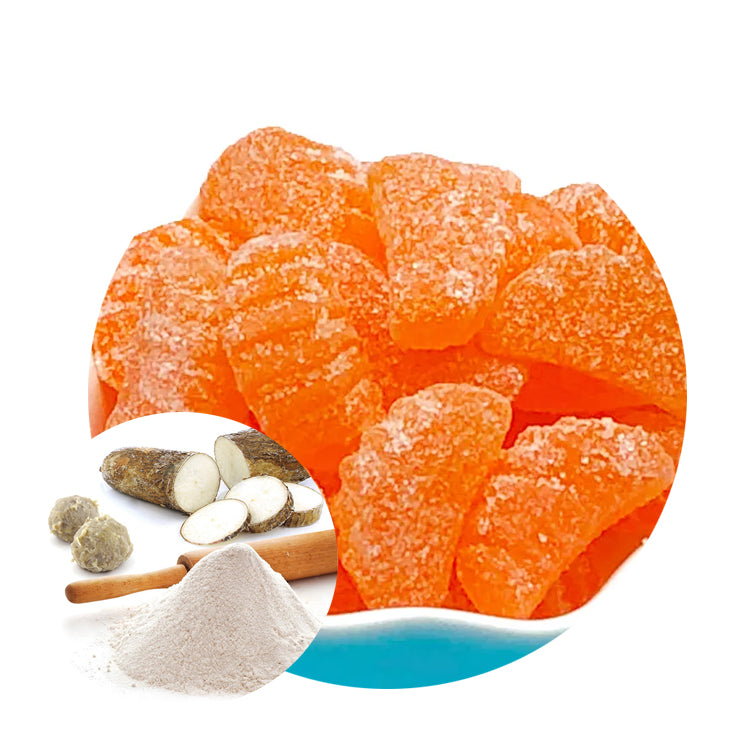 5. Candy manufacturing: Cassava starch can be used in candy manufacturing to increase the sweetness of candy, improve the taste, and prevent candy from sticking together.